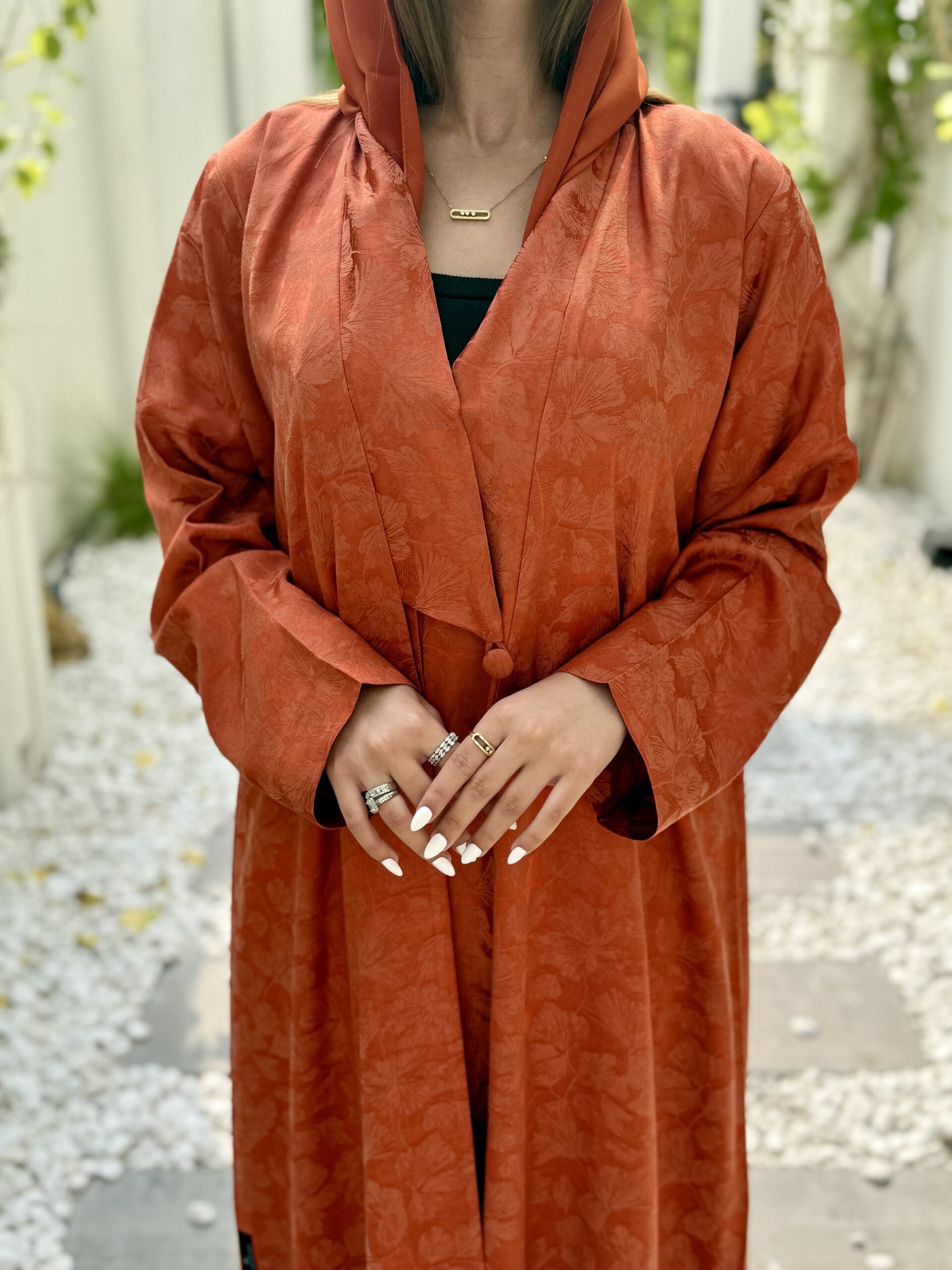- Steam on low to medium heat to avoid shiny marks. If ironing, use the inside of the abaya and a pressing cloth to protect the fabric.